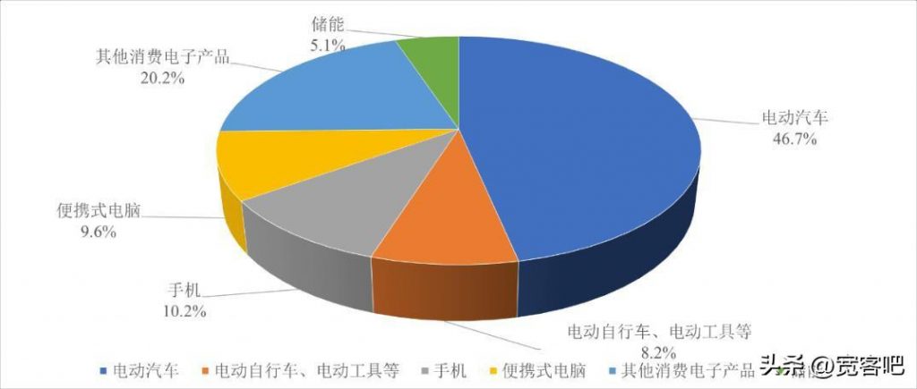 2019年,全球鋰電池在各應(yīng)用領(lǐng)域出貨量的分布情況如下: