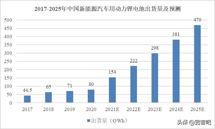 未來(lái),隨著新能源汽車(chē)積分制度執(zhí)行、傳統(tǒng)車(chē)企加大在新能源汽車(chē)領(lǐng)域的投資布局加快、造車(chē)新勢(shì)力的持續(xù)爆發(fā),中國(guó)新能源汽車(chē)市場(chǎng)仍將維持高速增長(zhǎng)的態(tài)勢(shì),與之配套的鋰電池出貨量也將持續(xù)增長(zhǎng)。根據(jù)GGII預(yù)測(cè),到2025年中國(guó)新能源汽車(chē)用動(dòng)力電池出貨量將達(dá)到470GWh,未來(lái)5年車(chē)用動(dòng)力電池市場(chǎng)年復(fù)合增長(zhǎng)率將達(dá)到42.50%。
